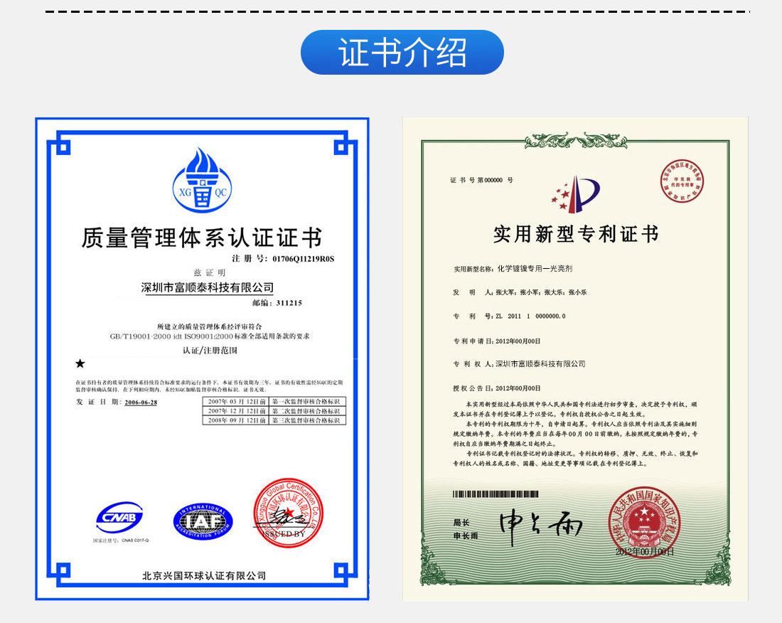 深圳市富順泰科技有限公司是專業(yè)從事化學(xué)鍍鎳(無電解鎳)技術(shù)研發(fā)的企業(yè),公司歷時(shí)五年不斷科研實(shí)踐應(yīng)用,終于突破了目前市場(chǎng)上化學(xué)鍍質(zhì)量不穩(wěn)定,藥水難控制,技術(shù)難以掌握,藥水難以循環(huán)使用的難題。強(qiáng)大的科研實(shí)力,人才優(yōu)勢(shì),已開發(fā)出高、中、低磷三大系列多種化學(xué)鍍鎳絡(luò)合劑和光亮劑產(chǎn)品。同時(shí)依照國(guó)外完整系列的地道美國(guó)化學(xué)鍍鎳ENP(Electroless Nickel Plating)工藝技術(shù),研發(fā)出了最新高科技成果:利用納米滲透鎳高中低端技術(shù),(將鎳滲透到金屬產(chǎn)品表面)使普通金屬材料經(jīng)過加工后耐腐蝕、耐磨、耐高溫,抗硫化氫、抗二氧化碳、抗鹽堿、抗二氧化硫。使用壽命超過50年以上,且無毒,無味,環(huán)保。 金屬產(chǎn)品經(jīng)滲透鍍鎳后,產(chǎn)品表面硬度可達(dá)550- 880HV,執(zhí)處理后可達(dá)1200HV,耐腐蝕鹽霧試驗(yàn)20-10000小時(shí),鹽酸試驗(yàn)500-1000小時(shí);耐磨試驗(yàn)高達(dá)x萬次;耐高溫863度,高溫下連續(xù)工作3500小時(shí)。防腐能力高于不銹鋼,成本低于不銹鋼。環(huán)保出口產(chǎn)品各項(xiàng)指標(biāo)都達(dá)到國(guó)際標(biāo)準(zhǔn)。 這些技術(shù)和產(chǎn)品已成功應(yīng)用在石油、制藥機(jī)械、電子、電腦外設(shè)、汽車、摩托車、鐵路機(jī)車、食品機(jī)械、煤礦機(jī)械、印刷機(jī)械、醫(yī)療器械、紡織機(jī)械、精密模具等各種行業(yè)上。產(chǎn)品遠(yuǎn)銷全國(guó)二十三個(gè)省,五個(gè)自治區(qū),四個(gè)直轄市,本公司產(chǎn)品質(zhì)量得到了廣大客戶的認(rèn)同和良好的評(píng)價(jià)。 公司擁有較大規(guī)模的中試基地及生產(chǎn)基地,常年對(duì)外承接鋼鐵件、銅件、鋁和鋁合金、不銹鋼、粉末冶金等各種材質(zhì)工件的化學(xué)鍍加工,為新產(chǎn)品的研制開發(fā)、為用戶單位技術(shù)人員的后繼培訓(xùn)提供良好的條件。